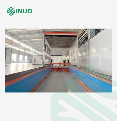 2. The rain test chamber is a one-piece structure with front and rear doors. Vehicles enter from the front, pass through the spray section for the spray test, then proceed to the drain and dry section where surface water is blown away with a high-pressure air gun before exiting through the rear door. The spray section is 7 meters long, and the drain and dry section is 5 meters long.