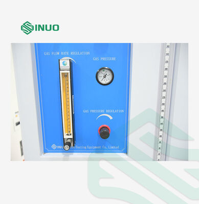 Adopt original imported flowmeter, the flow rate is adjustable, the accuracy is 1%, the following are the reference values of each test: UL1581 power, flame height, temperature measurement time and flow: 225W: (16.5mm), 84±2S, 405 ±10mL/min 500W: Inner flame:40±2mm & Outer flame:125±10mm, 54±2S, 965 ±30mL/min UL 94 power, flame height, temperature measurement time and flow: 50W: 20±2mm(there is no internal and external flame), 44±2S , 105±5ml/min 500W: Inner flame:40±2mm & Outer flame:125±10mm, 54±2S, 965±30ml/min |